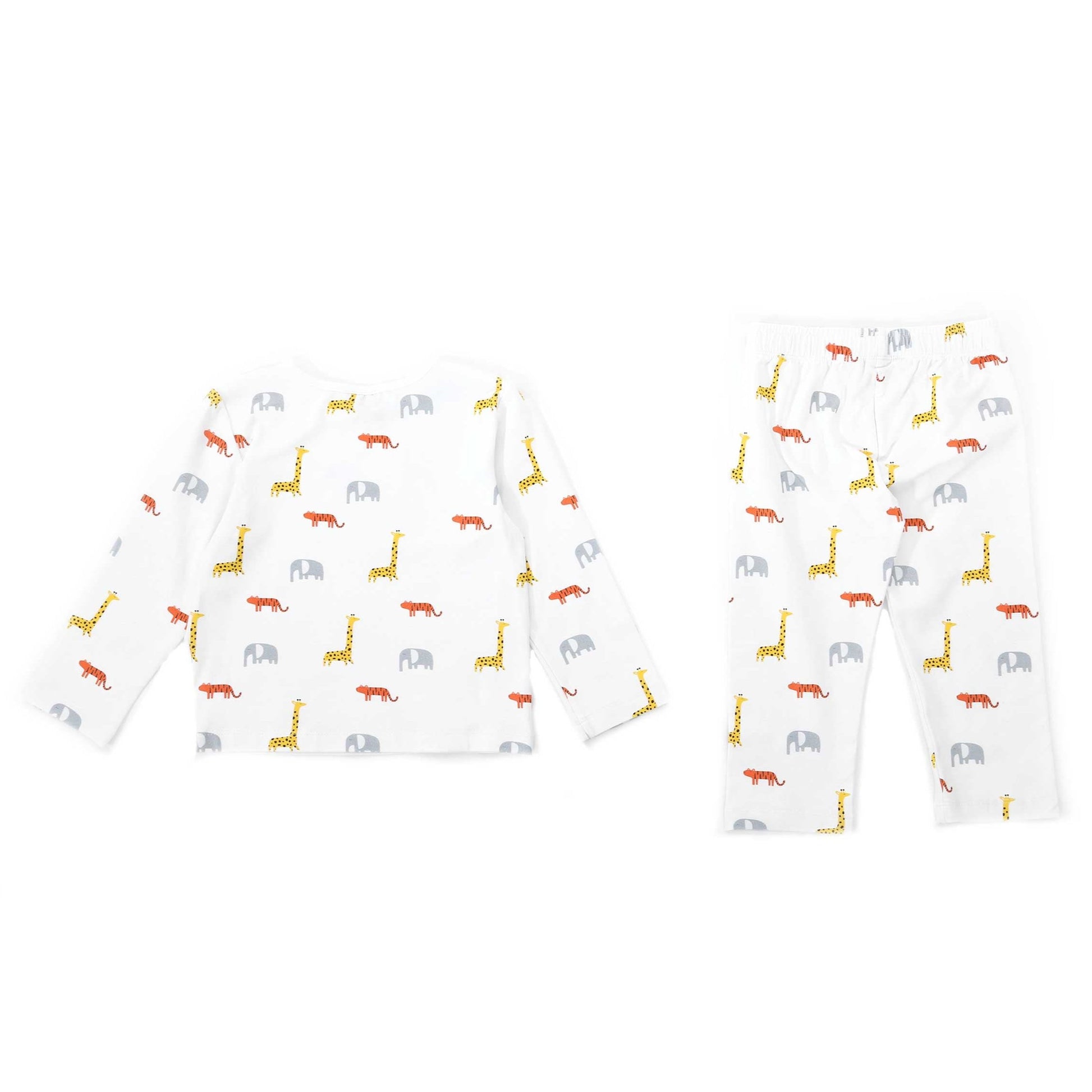 Our safari-inspired animal print featuring giraffes, elephants and tigers with white trim is a hit with newborns onwards.